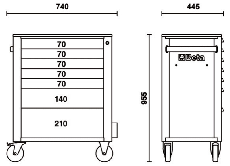 BETA Werkzeugwagen mit sieben Schubladen Orange