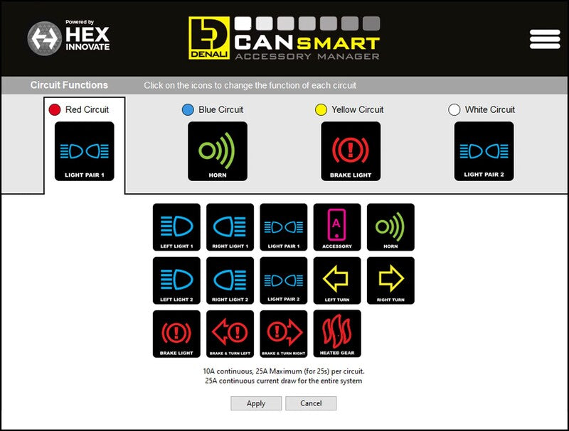 Der bahnbrechende Harley-Davidson CANbus-Controller bietet Plug & Play-Anschluss und intelligente Steuerung von Aftermarket- und Original-Harley-Davidson-Zubehör direkt über die Originalschalter Ihres Motorrads oder die DENALI Accessory Manager Software. Schließen Sie den CANsmart™ Controller einfach an den Diagnoseanschluss Ihrer Harley-Davidson an, um auf über 35 programmierbare Zubehöreinstellungen zuzugreifen, die eine intelligente Steuerung von Zusatzscheinwerfern, Hupen, Bremslichtern oder jedem anderen erdenklichen Zubehör ermöglichen. Die vier Zubehörstromkreise sind elektronisch abgesichert und können bis zu 25 Ampere Spitzenstrom (10 Ampere Dauerstrom) liefern.