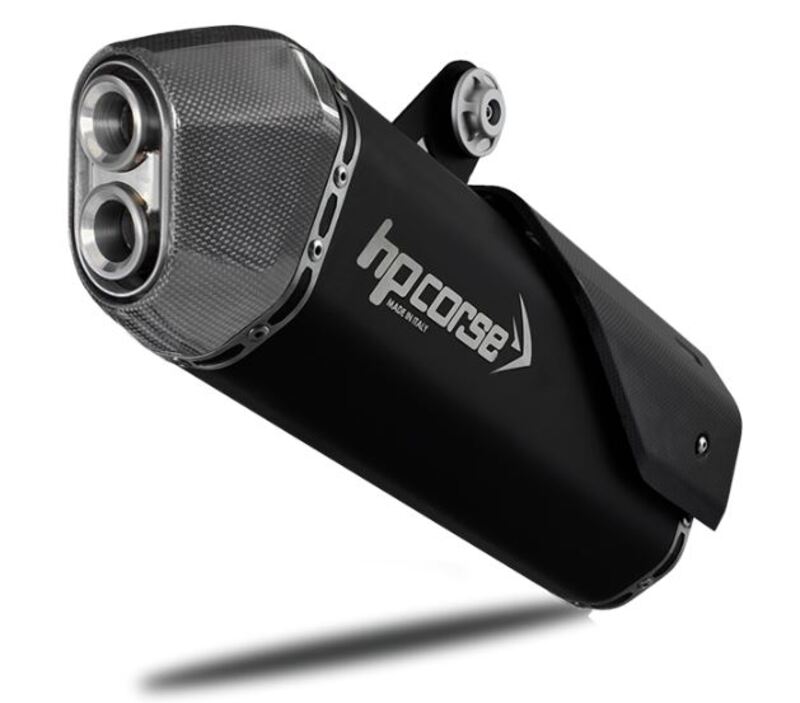 Reinheit des Designs. Der neue SPS-CARBON Entlader ist der Maxi Enduro, dem Sport Touring / Adventure und dem Crossover der letzten Generation gewidmet und liebt den Nervenkitzel der großen Räume und der Straßen, die über den Horizont hinausgehen. Entwickelt im Forschungs- und Entwicklungszentrum von Bologna, ist die neue HP CORSE Kreatur stark geboren, in der Lage, die anspruchsvollsten Situationen zu widerstehen und die vielen km gefahren, um Motorradfahrer durch die Straßen und Wege, Bergstufen, Wüsten auf der ganzen Welt zu begleiten. Mehr als ein Jahr lang auf dem Prüfstand und auf den anspruchsvollsten Strecken getestet, garantiert der neue HP CORSE Auspuff Zuverlässigkeit und eine bessere Leistung als alle originalen Auspuffanlagen, die insbesondere die niedrigen und mittleren Leistungsstufen ersetzen. HP Corse SPS CARBON mit DBK ist leicht, hat einen achteckigen Boden, eine Endkappe aus Kohlefaser und einen Schalldämpferkörper mit lasergraviertem Logo, erhältlich in drei verschiedenen Materialien: Titan, Stahl satiniert und Edelstahl keramisch schwarz.