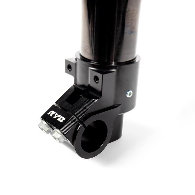 Die KYB Factory Kit Gabel ist eine beidseitig closed cartridge Gabel mit je einer Feder. Die Gabel wird von vielen WM Teams im Motocross und Supercross eingesetzt. Die KYB Kit Gabel hat eine sehr präzise und sehr gut einstellbare Dämpfung. Ein sehr gutes ansprechen der Gabel wird erreicht durch schwarze DLC beschichtete Tauchrohre, alle inneren Bauteile sind ebenso beschichtet und somit wird die innere Reibung auf ein Minimum reduziert. Die Aussenrohre sind Kashima beschichtet und die Gabelfüße sind CNC gefräst für exakte Präzision und Verwindungssteifigkeit. Ein weiterer Vorteil der Gabel ist eine spezielle Federabstützung welche die Gabel am Ende des Federwegs progressiver macht für eine weichere Landung.