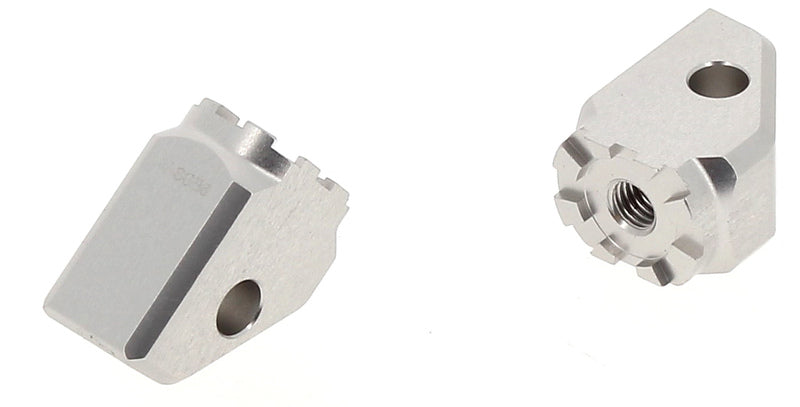 Diese Fußrastenadapter von MFW eignen sich zum Anbau an die verstellbaren Aufnahmen der Marke. Sie bieten zahlreiche Einstellmöglichkeiten für noch mehr Fahrkomfort.