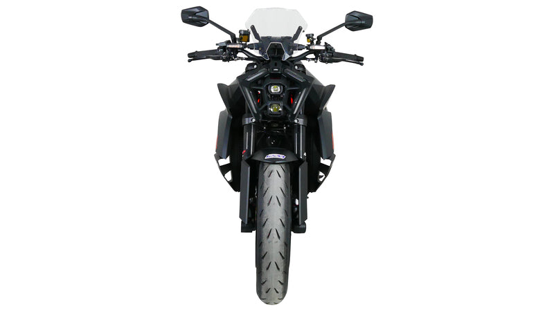 Die MRA Sportscheibe (NSPM) unterstreicht das radikale Design der Superduke. Ihre Kontur ist vom Tagfahrlicht übernommen, sodass sie super ins Gesamtbild passt. Verfügbar in Farblos, Rauchgrau und Schwarz. Das Befestigungsmaterial ist im Lieferumfang enthalten.