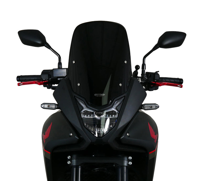 Wer ein wenig mehr Windschutz sucht, ist mit der MRA-Tourenscheibe gut beraten: sie ist mit insgesamt 46cm Länge die größte Scheibe im MRA-Sortiment.