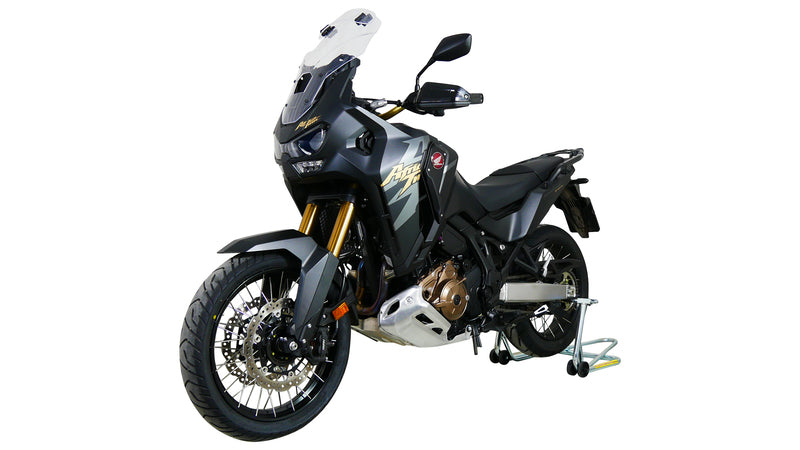 Diese Tourenscheibe hat am Ende einen Spoiler, der sich manuell in sieben Stufen auf die gewünschte Position verstellen lässt. Durch die Hinterströmumg des Spoilers wird der Winddruck vom Fahrer genommen und gleichzeitig die Turbulenzen reduziert. Die Vario- Touringscreen ist in klar und rauchgrau erhältlich.