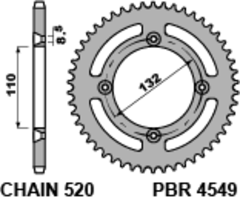 PBR Standard Kettenrad C45 Stahl 4549 - 520