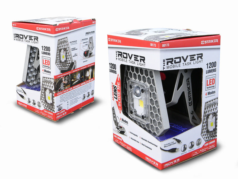 RISK RACING Striker Rover’s is bringing much needed evolution to the world of mobile lighting by offering consumers a versatile, bright, rechargeable task light. Lightweight, durable, and easily packed, the Rover can flood a room, work area, or campsite with a powerful array of light.