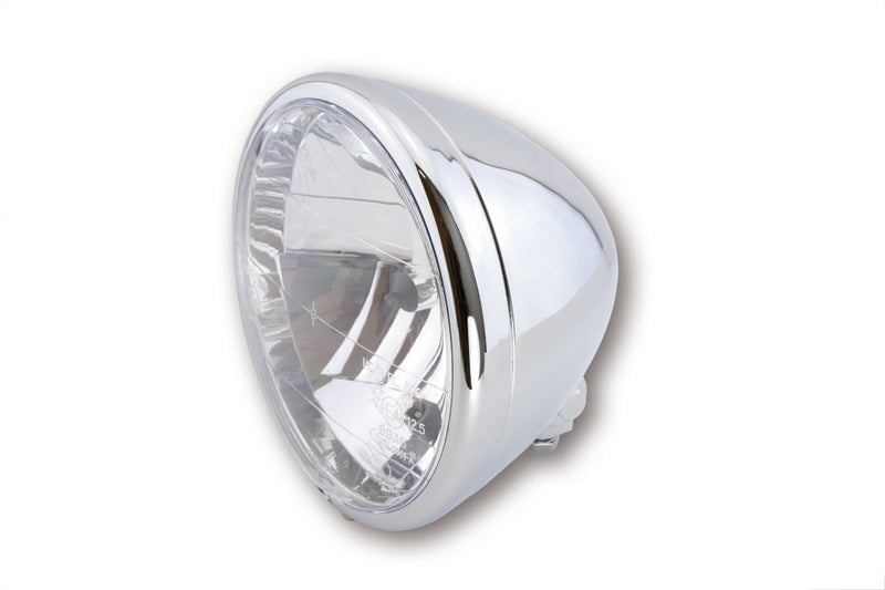 SHIN YO 6 1/2 Zoll Hauptscheinwerfer El Paso, chrom oder schwarz wählbar, E-geprüft. Der beliebte Hauptscheinwerfer mit einer nach hinten spitz auslaufenden Kugelform und seinem klassischen Aussehen macht den Schweinwerfer zum perfekten Teil für alle Umbau-Vorhaben. Der geprüfte Scheinwerfer ist dazu noch robust und einfach zu verbauen.