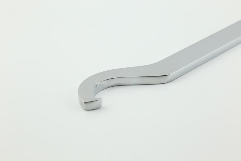 Der Hakenschlüssel eignet sich zum Einstellen von Federbeinen um die Federspannung zu verändern. Der Hakenschlüssel wird an die jeweilige Schlitzmutter angesetzt und nach links oder rechts bewegt um die Einstellung am Federbein zu verändern. Kann auch für Muttern von Lenklagern passen.