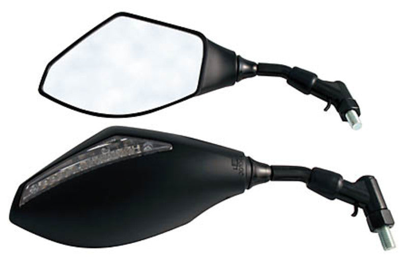 Lenkerspiegel mit LED Blinker, Gehäuse schwarz, Spiegel und Blinker E-geprüft, Paar. Spiegelfläche ca. 150 x 90 mm.