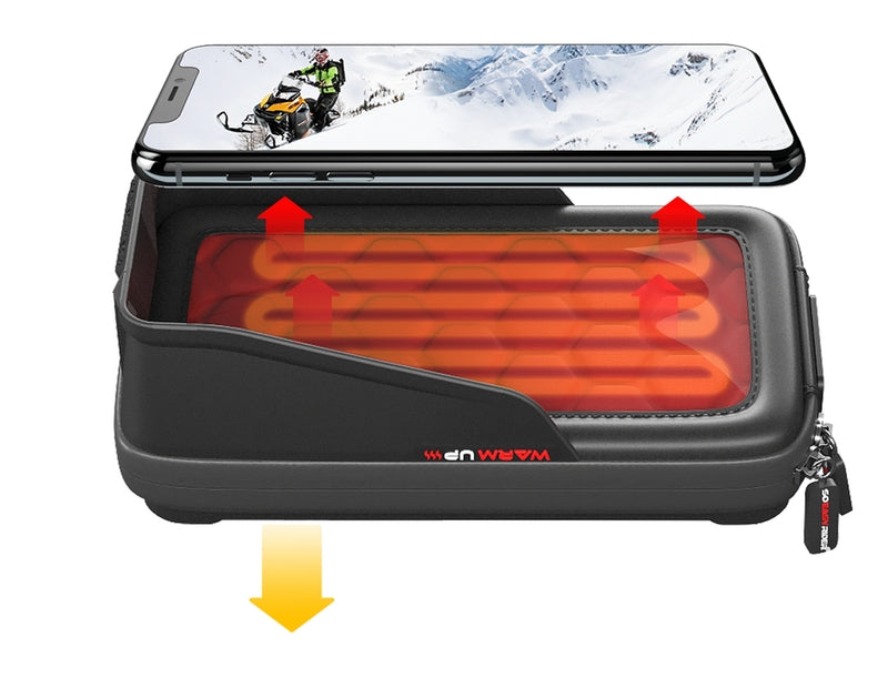 During the winter, smartphones are often exposed to very low outdoor temperatures. In some extreme cases, the smartphone can no longer operate and displays a message asking the user to warm up his device to continue to use it. The cold create a disruption of the properties of lithium and processors contained in the battery of the smartphone. The battery wears out quickly and can cause irreparable damage to the phone. WARM UP allows the battery to maintain the perfect operating temperature and preserve the phone's life.