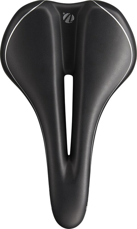 The opening in the base of the saddle relieves pressure on the body's most sensitive area.